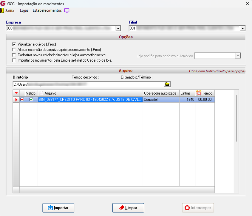2 - Efetuamos importação do arquivo com os ajustes de vendas.