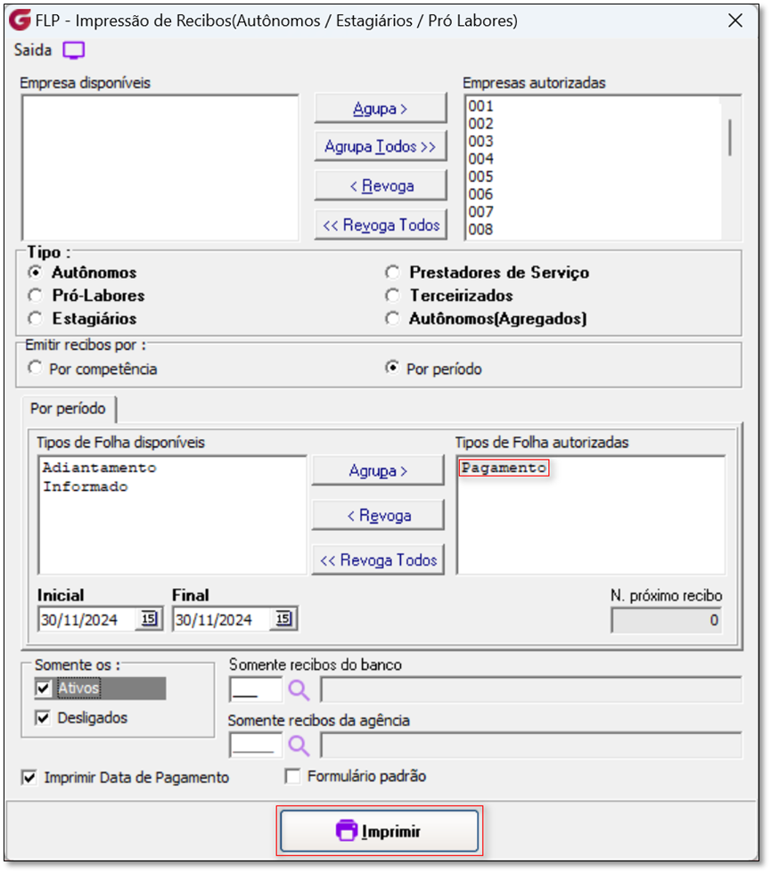 CENÁRIO 1: Emissão do novo recibo (13) na rotina cálculo do Pagamento, Figura 4.