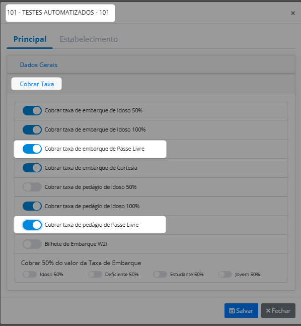 Parametrização geral já existente no LunaADM associada ao novo tipo de passageiro.: Importante frisar que esse novo tipo de passageiro segue as regras já existentes para cobrança das taxas e pedágios na venda.