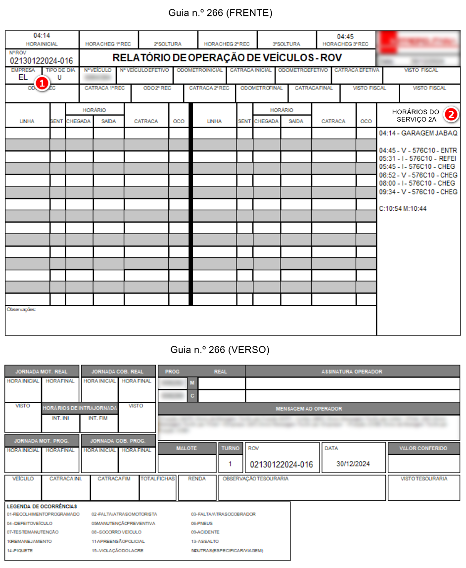 Obs.: A apresentação dos dados no Campo HORA CHEG. 3ª REC do Layout n.º 266, foram retirados, deixando o campo em branco, proporcionando ao usuário o preenchimento do campo manualmente.