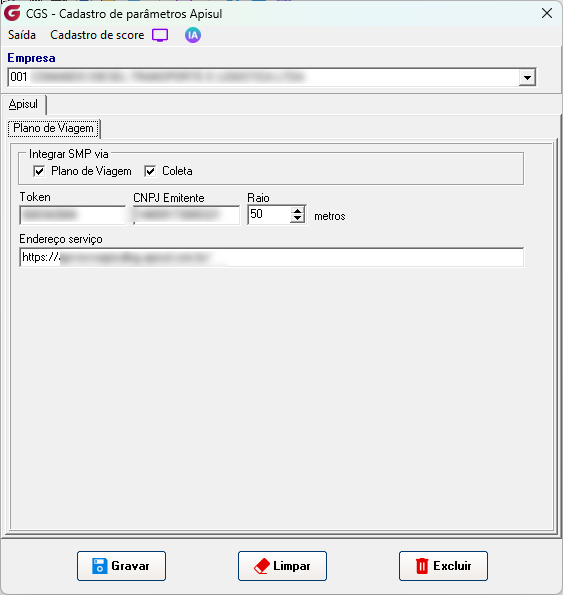 Informado pela Gerenciadora de Risco Apisul. É um dado obrigatório para autenticação da comunicação com o serviço.CNPJ Emitente (opcional):