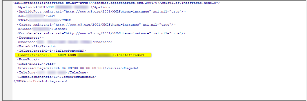 Ao realizar o envio e conferir o XML enviado para a Apisul, os pontos serão apresentados conforme a nomenclatura definida no campo PGR.