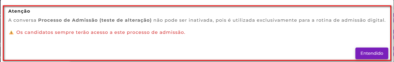 Ao tentar alterar, o sistema exibirá a seguinte mensagem:
