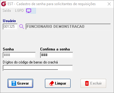 Cono funcionário associado a um usuário, é solicitada a senha para sequência da rotina.