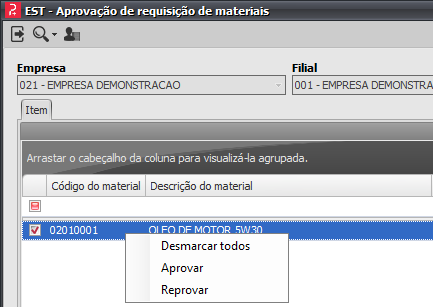 Selecione os itens e com o botão direito do mouse defina se deseja aprovar ou reprovar.