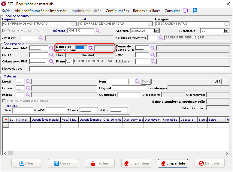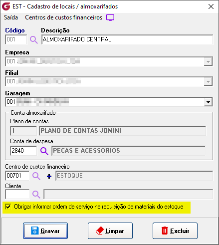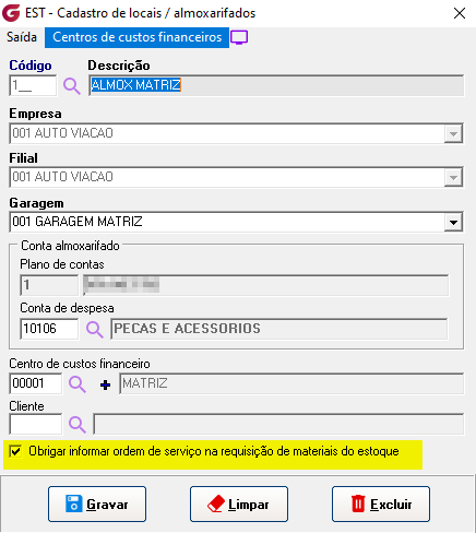 Digitar centro de custo financeiro Objetivo: Definir obrigatoriedade de informar um centro de custo financeiro. Com o parâmetro marcado, é incluído campo de preeenchimento obrigatório de centro de custo financeiro.