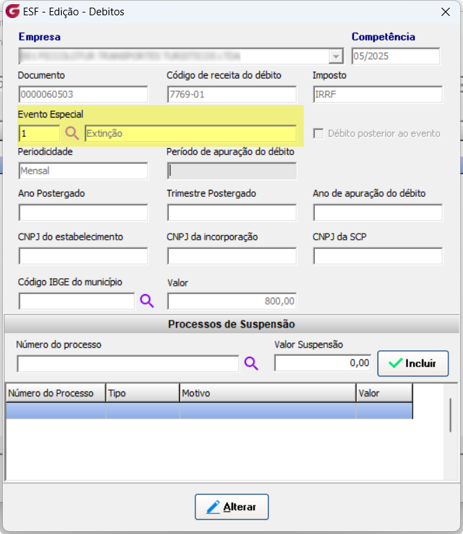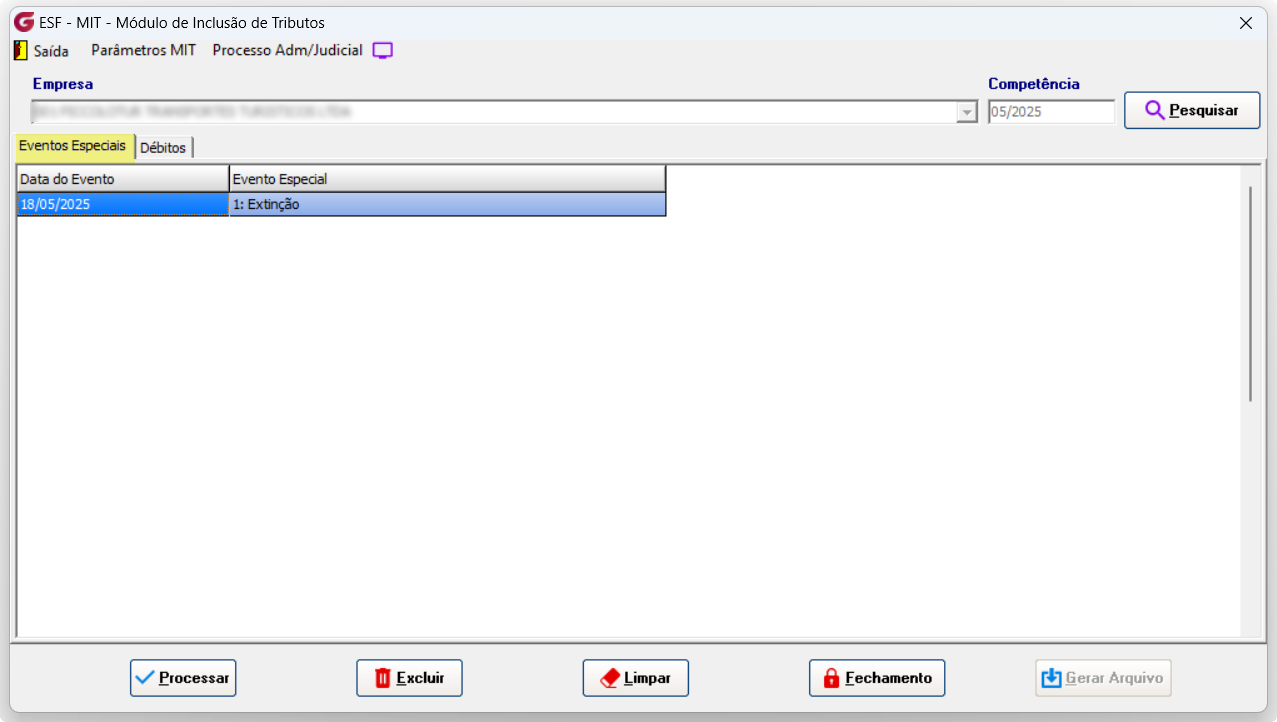 Quando houver ocorrido algum evento de reorganização ou extinção societária – Evento Especial , deve informar os dados do processo para que o MIT os envie para a DCTFWeb. |