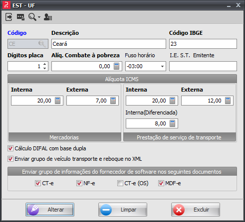 Atualizar cálculo de DIFAL para o estado do Ceará para atender à legislação. |