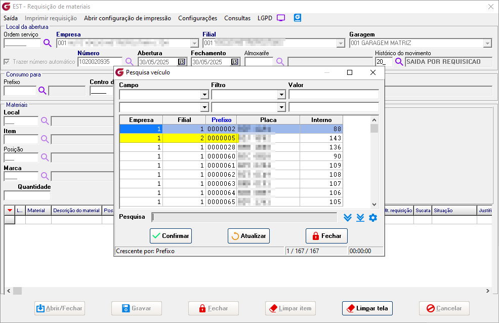 Diários>Saídas>Requisição de materiais.  Diários>Saídas>Requisição de materiais simplificada.