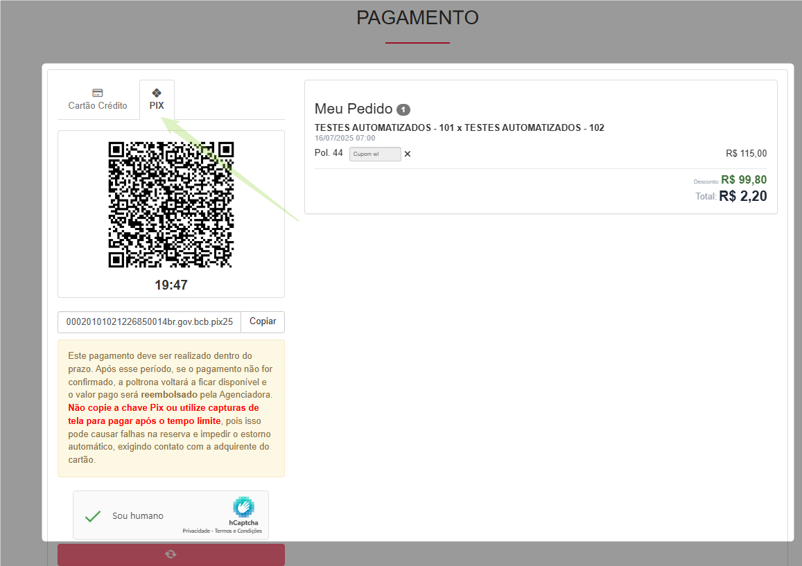Visando melhorar a experiência do usuário, a tela de pagamento do sistema de compra de passagens White Label passou por uma atualização visual e funcional. O que há de novo: Os campos e botões da interface foram reorganizados, tornando a navegação mais intuitiva e dinâmica. Essa melhoria proporciona um fluxo de compra mais claro e ágil, reduzindo possíveis dúvidas no momento do pagamento. Além disso, os botões de seleção da forma de pagamento ganharam maior destaque, facilitando a identificação e escolha da opção desejada pelo cliente, seja ela por cartão, PIX, dinheiro ou outros meios disponíveis.