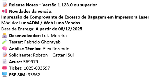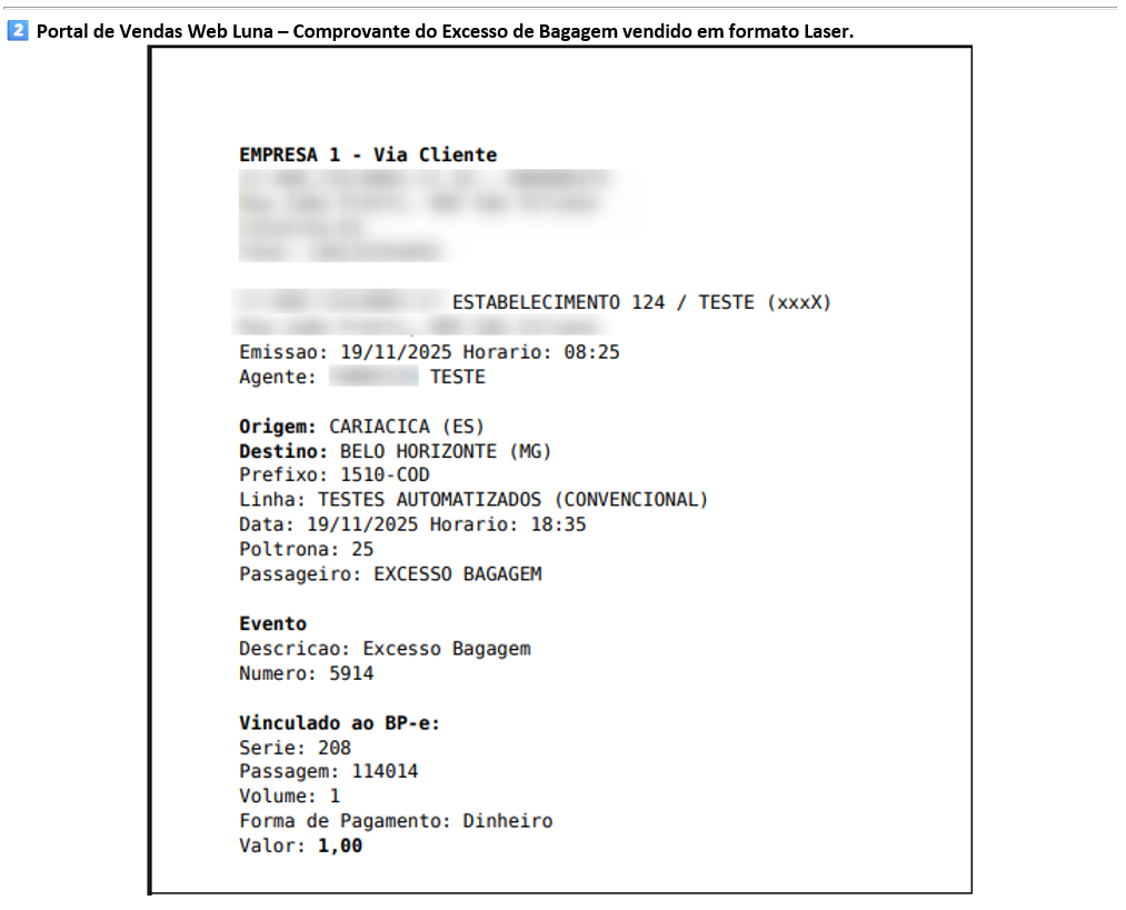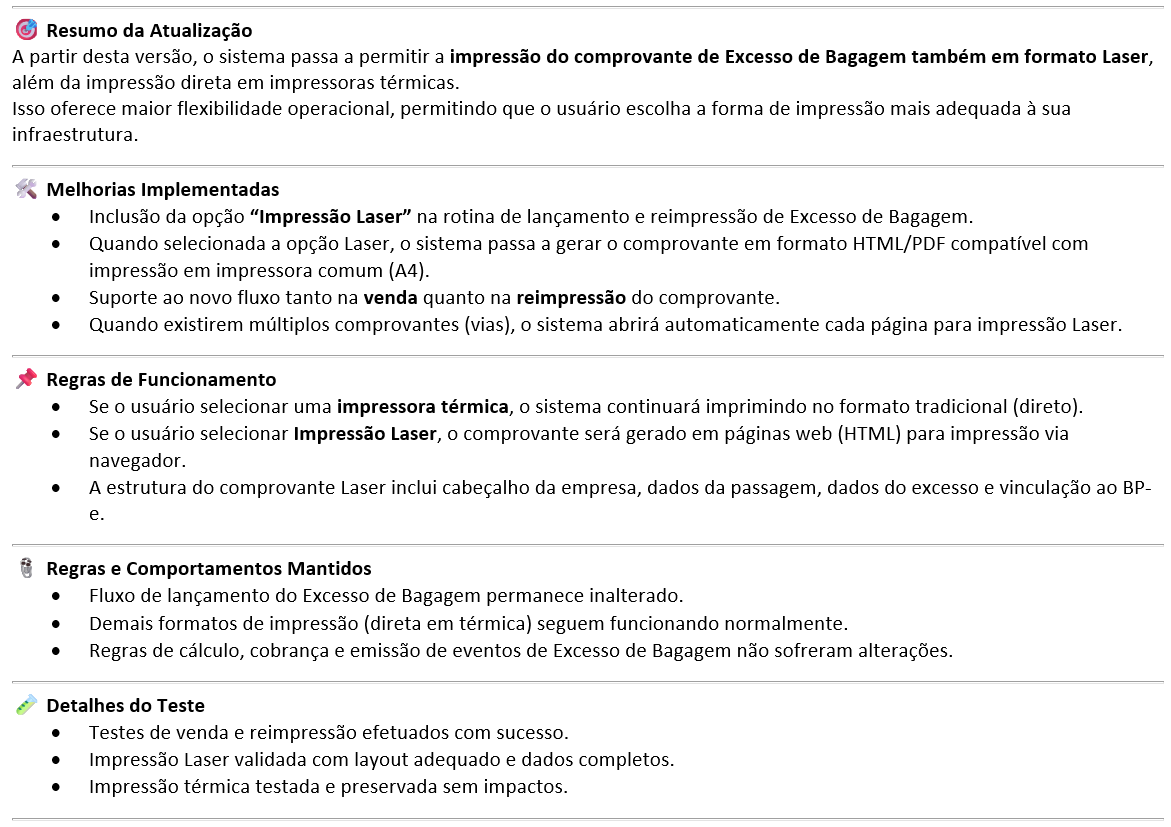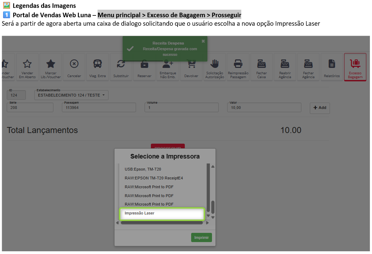 Impressão de Comprovante de Excesso de Bagagem em Impressora Laser. |