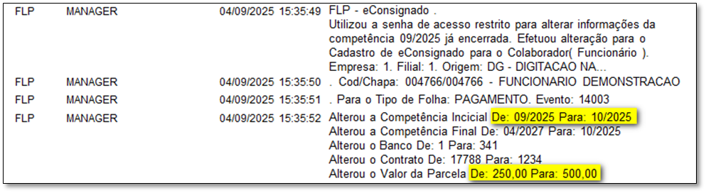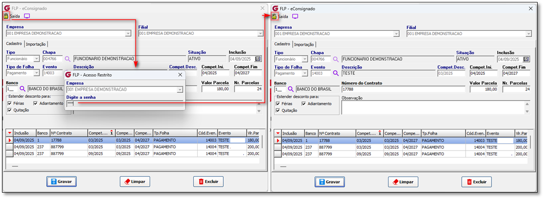 * O que foi alterado: Agora é possível alterar, incluir ou excluir informações no cadastro do eConsignado mesmo para competências já encerradas, desde que o usuário se autentique com uma senha de acesso restrito.