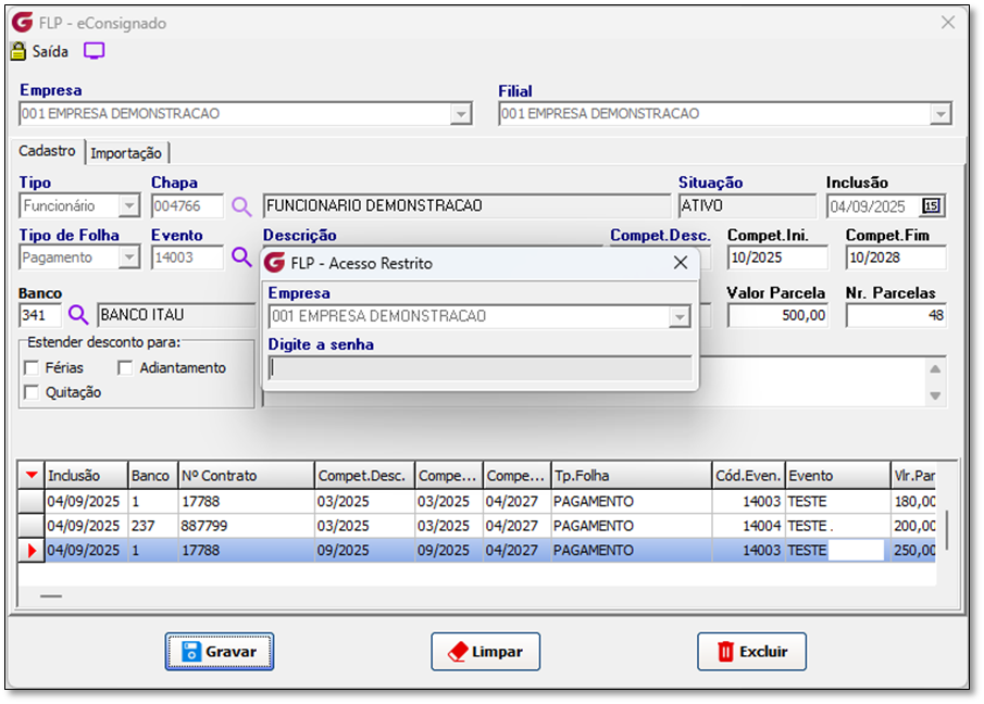 2. Acesso Restrito para Competências Encerradas: Permissão para editar, incluir ou excluir informações em competências já encerradas mediante autenticação com senha de acesso restrito.