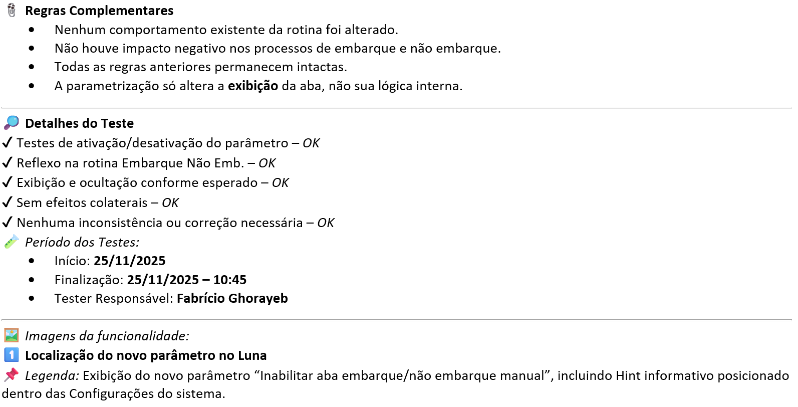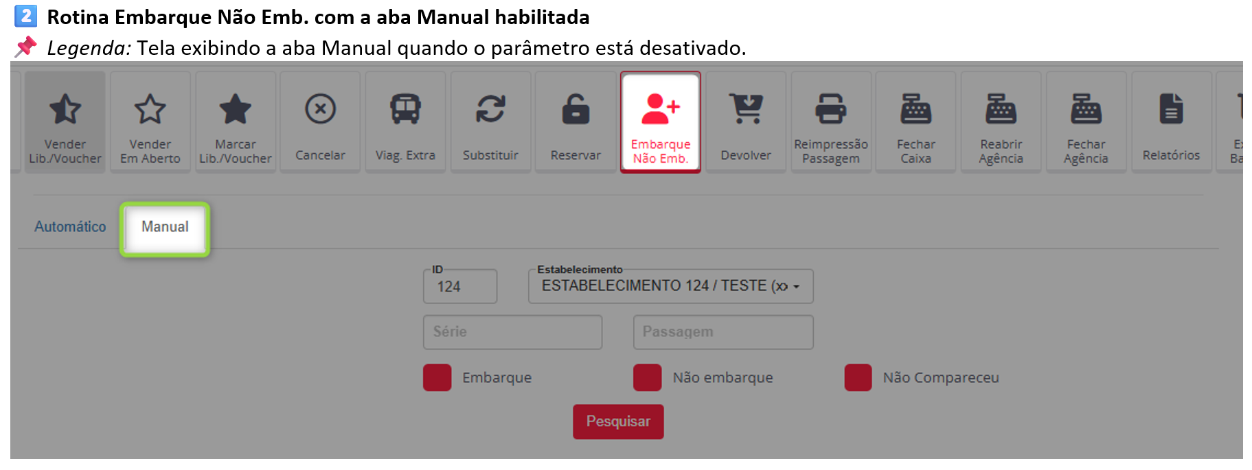 Nova Parametrização para Inabilitar a Aba Manual na Rotina Embarque/Não Embarque. |