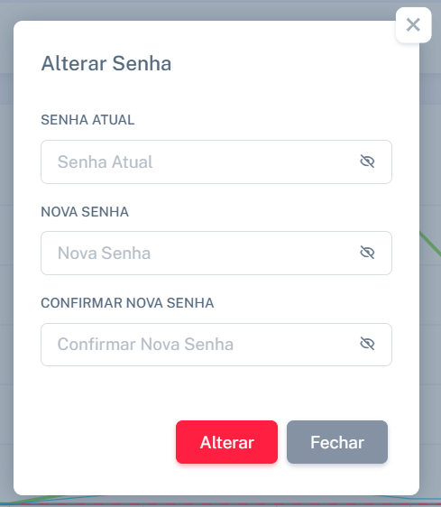 Função “Alterar Senha” a partir dos dados de usuário. [Praxio Fidelidade ADM] |