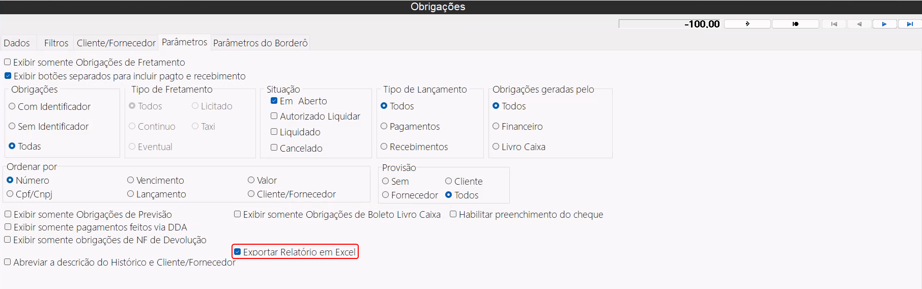 OBS: Coluna implementada apenas na exportação com parâmetro “Exportar relatório em Excel” ativo