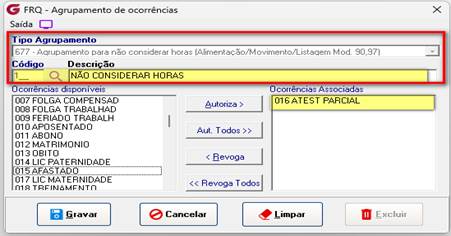Para os atestados, o sistema vai olhar o agrupamento 677 para determinar se a ocorrência de atestado será somada na jornada ou não.