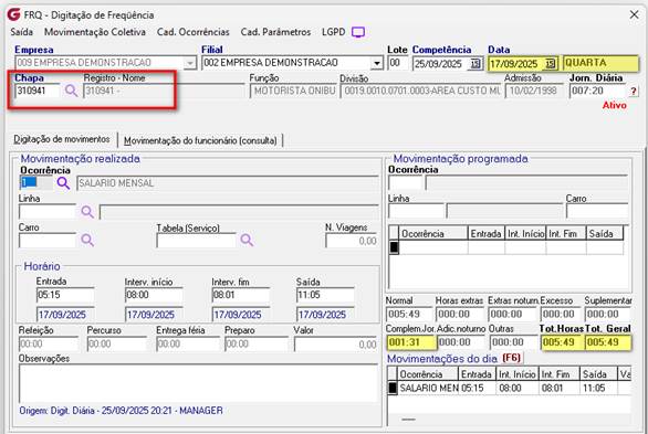 Módulo: Frequência Caminho: Menu: FRQ - Cadastro - Parâmetros – Cadastro - Opções da Digitação 3 – “Controle – cálculo de intervalo” FRQ - Listagem – Listagem de Movimento – Modelo 97 |