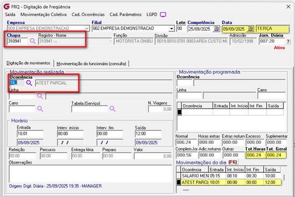 Ao revogar a ocorrência – O sistema considera a ocorrência de atestado para o total de horas, considerando assim para regra do pagamento da H.REF quando a jornada somada for superior a 06horas.