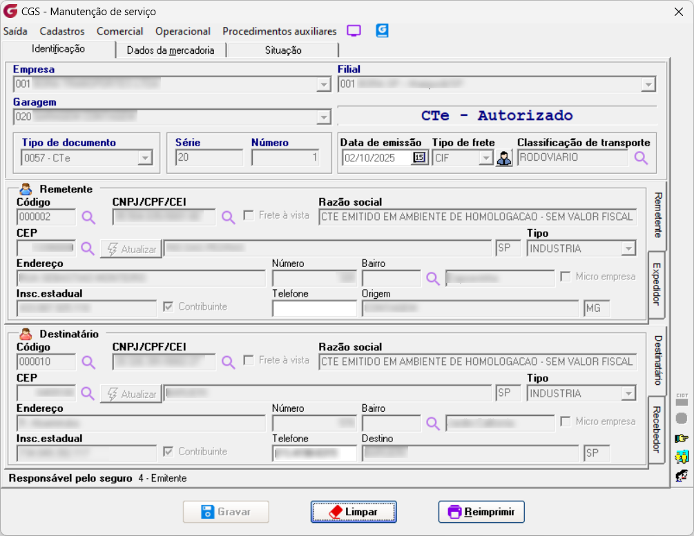 Acessando: "Cadastro > Parâmetros > Importação de XML - CTe."