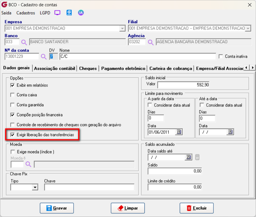 Importante: A data efetiva gravada nas transferências liberadas será igual a data de movimentação!