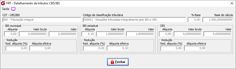 É aberta tela com os detalhes dos tributos