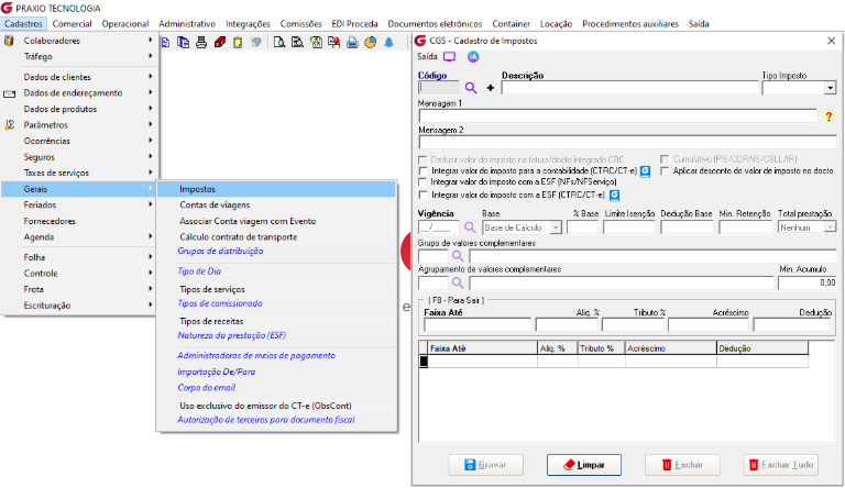 1. Cadastro Para efetuar o cadastro dos novos impostos (IBS e CBS), acesse a sequência de menus ‘Cadastro > Gerais > Impostos’. .