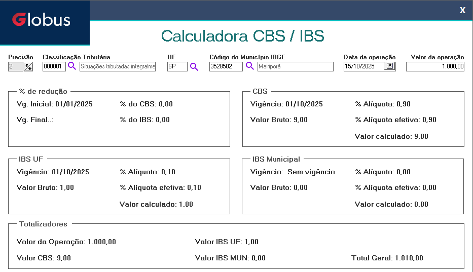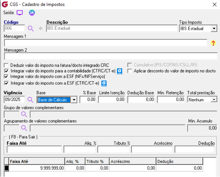 Em seguida, efetue o mesmo processo para os impostos para o IBS Estadual e CBS.