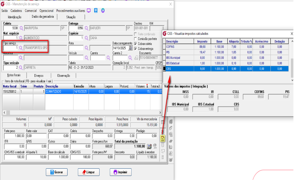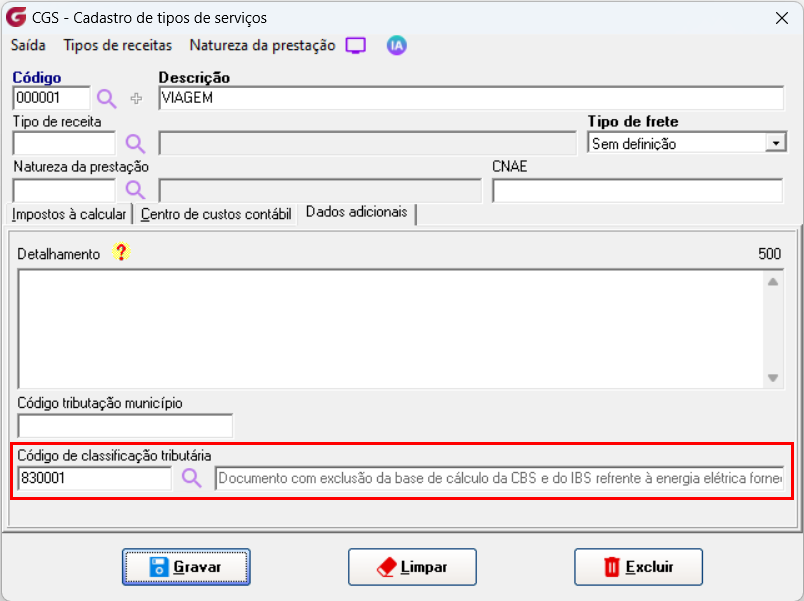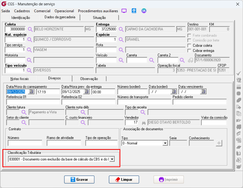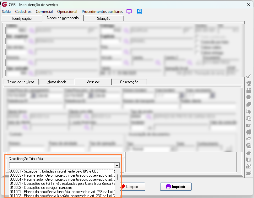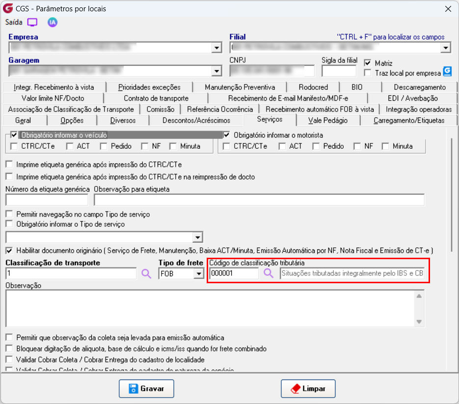 Importante: Vale destacar que, conforme mencionado, os valores das alíquotas desses impostos poderão ser atualizados posteriormente e informados pelo Governo. Diante disso, deverão ser ajustados nos respectivos cadastros indicados, conforme os links mencionados nas informações adicionais desta documentação. 4. Relatório Após a emissão dos documentos fiscais com os novos impostos, os valores correspondentes passam a ser exibidos no relatório Serviço de Frete, acessível em: Operacional → Relatórios → Serviços de Frete. Para essa finalidade, foi criado o Modelo 13, desenvolvido exclusivamente para apresentar os novos impostos: ![]() ![]() Na tela de fitro para gerar o relatório com a opção do botão 'Consultar' ![]() 5. Preenchimento automático Com o objetivo de evitar o preenchimento manual e tornar o processo mais ágil para o usuário emissor, foram criadas parametrizações que permitem padronizar o código de classificação tributária utilizado na emissão do documento fiscal. A definição do código poderá ocorrer com base nos seguintes critérios: Parâmetro Local: Tipo de Serviço:![]() Quando houver concorrência, ou seja, quando ambos os parâmetros estiverem preenchidos, o sistema aplicará a regra de maior precisão: Preferência para o Tipo de Serviço: Caso exista um código configurado diretamente no Tipo de Serviço associado ao documento fiscal, ele será utilizado. Fallback para Parâmetro Local: Se o Tipo de Serviço não estiver parametrizado, mas o Parâmetro Local sim, o sistema utilizará o código definido a nível de Garagem. Quando isso ocorrer, a alteração do usuário terá prioridade sobre qualquer parametrização configurada.
