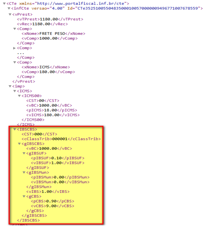 Impostos IBS e CBS no XML