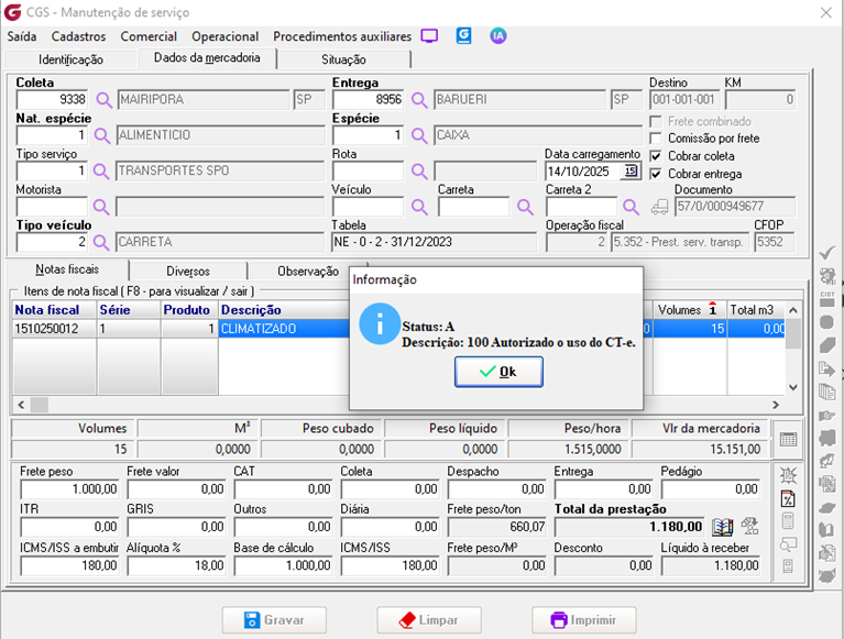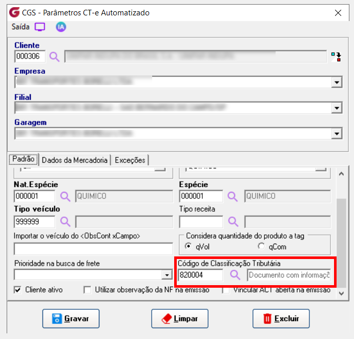 Na emissão automatizada (Cargas Automatização), o sistema segue na mesma lógica, no entanto com um parâmetro adicional e sendo o mais prioritário, sendo possível configurar a nível da operação com o respectivo cliente: