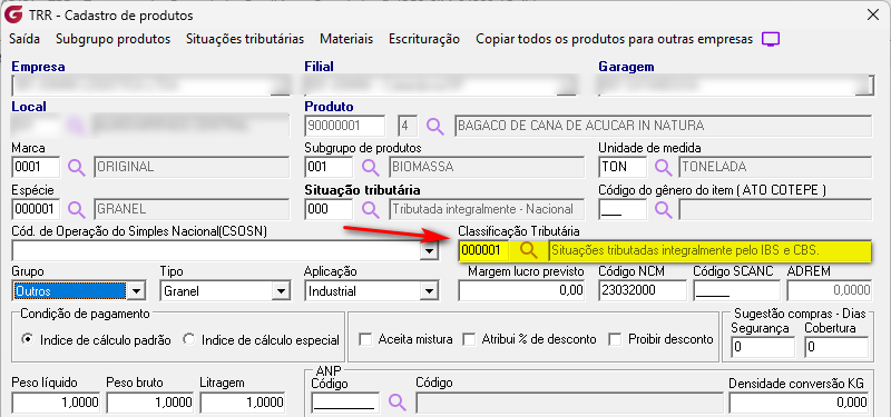O sistema permite associar uma classificação tributária a um produto específico por meio do cadastro de produtos.