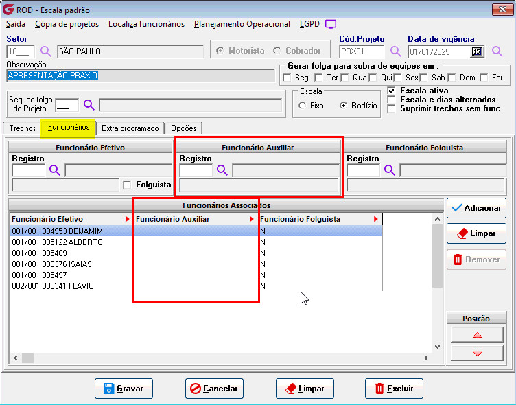 Passo 2: Associar o funcionário auxiliar ao efetivo
