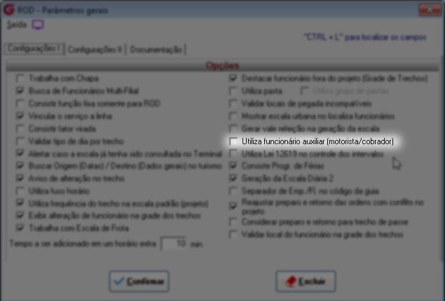Marque o parâmetro “Utiliza funcionário auxiliar (motorista/cobrador)”.
