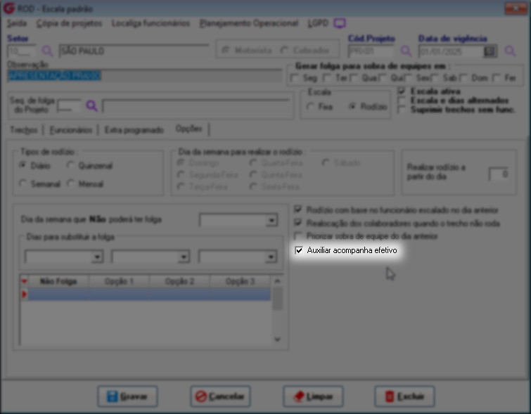 Com esta configuração, o sistema manterá a dupla unida não só nos trechos, mas também em plantões, folgas e intervalos.