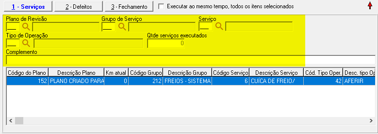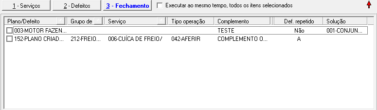 Opção "Executar ao mesmo tempo, todos os itens selecionados" Marcando a opção, ao clicar no botão "Executar" todos os itens que estiverem marcados serão executados ao mesmo tempo. Botão Executar - Clicando no botão é aberta a tela para informação do serviços executados.