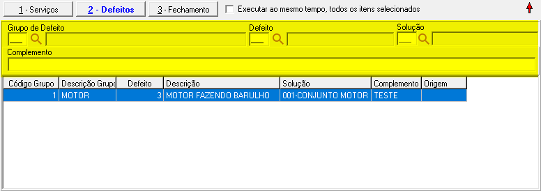 Botão Defeitos - Clique no botão para visualizar os defeitos da O.S. ou incluir novos defeitos