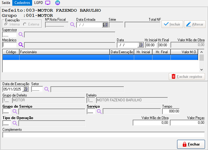 A tela possui informação do código e descrição do grupo , código e descrição do feito ou serviço e se o a O.S. é interna ou externa. Campo para associar nota fiscal no caso de O.S. externa Campo para informar o supervisor Campo para informar o mecânico , a data, hora inicial e final do serviço e o valor da mão de obra Campo para informar a data de execução , setor , o grupo de serviço, serviço , tempo e tipo de operação Campo para informar valor de mão de obra e valor de peças Campo para informar complemento. Após informar os dados da execução clique no botão fechar. Botão Excluir - Selecione o serviço ou item que deseja excluir da O.S. e clique no botão excluir. Botão excluir serviço executado - Selecione o serviço e/ou defeito já executado e clique no botão para excluí-lo Botão Marcar todos - Clique no botão para selecionar todos os itens. Botão desmarcar todos - Clique no botão para desmarcar todos os itens. Botão Gravar - Clique no botão para gravar a O.S. Botão fechar com pendência - Clique no botão fechar com pendência para fechar a O.S. mesmo que ainda haja serviços ou defeitos não executados. Botão cancelar - Clique no botão cancelar, para limpar as informações que ainda não foram gravadas e voltar a movimentação para o campo Dt. de fechamento e reiniciar o processo. Botão limpar - Clique no botão limpar, para limpar totalmente a tela Botão excluir O.S. - Clique no botão excluir para excluir a O.S. Se algum auxílio ou esclarecimento for necessário, conte conosco através de nossos canais de atendimento. Telefone: (11) 5018-2525. Portal do Cliente: https://portaldocliente.praxio.com.br/ #PodeContar |