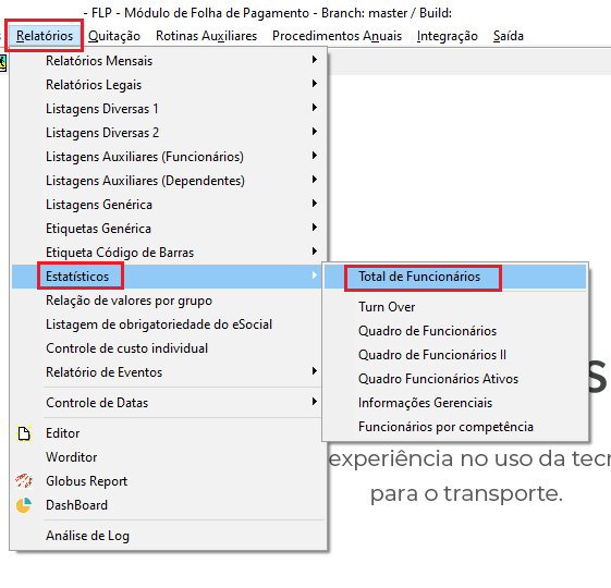 Este procedimento tem como finalidade consultar o total de funcionários registrados no sistema, facilitando o acompanhamento estatístico da força de trabalho. |