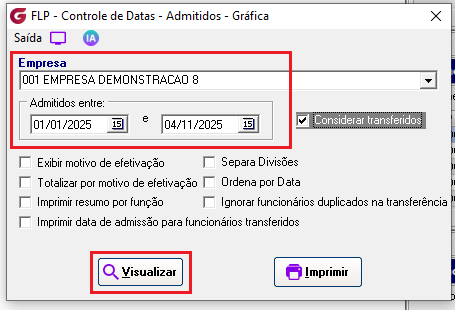 Vá até o menu Relatórios > Controle de Datas > Admitidos.