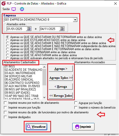 Agrupar o afastamento ou todos os afastamentos.
