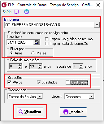 Vá até o menu Relatórios > Controle de Datas > Tempo de Serviço.