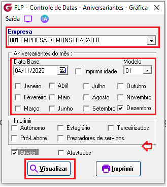 Vá até o menu Relatórios > Controle de Datas > Aniversariantes.
