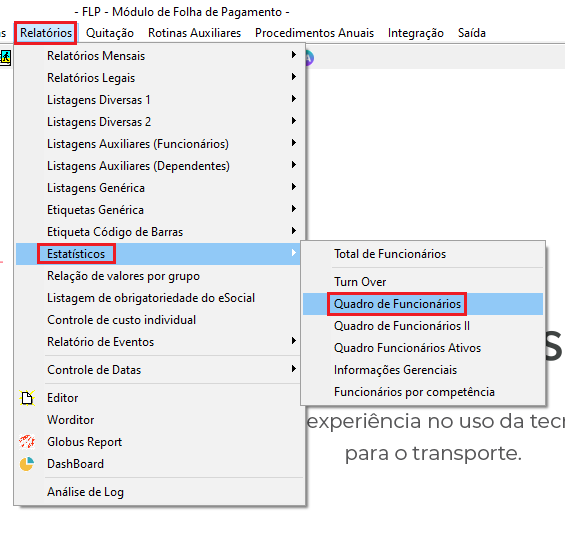 Orientar o cliente na emissão do Relatório estatístico referente ao quadro de funcionários. |
