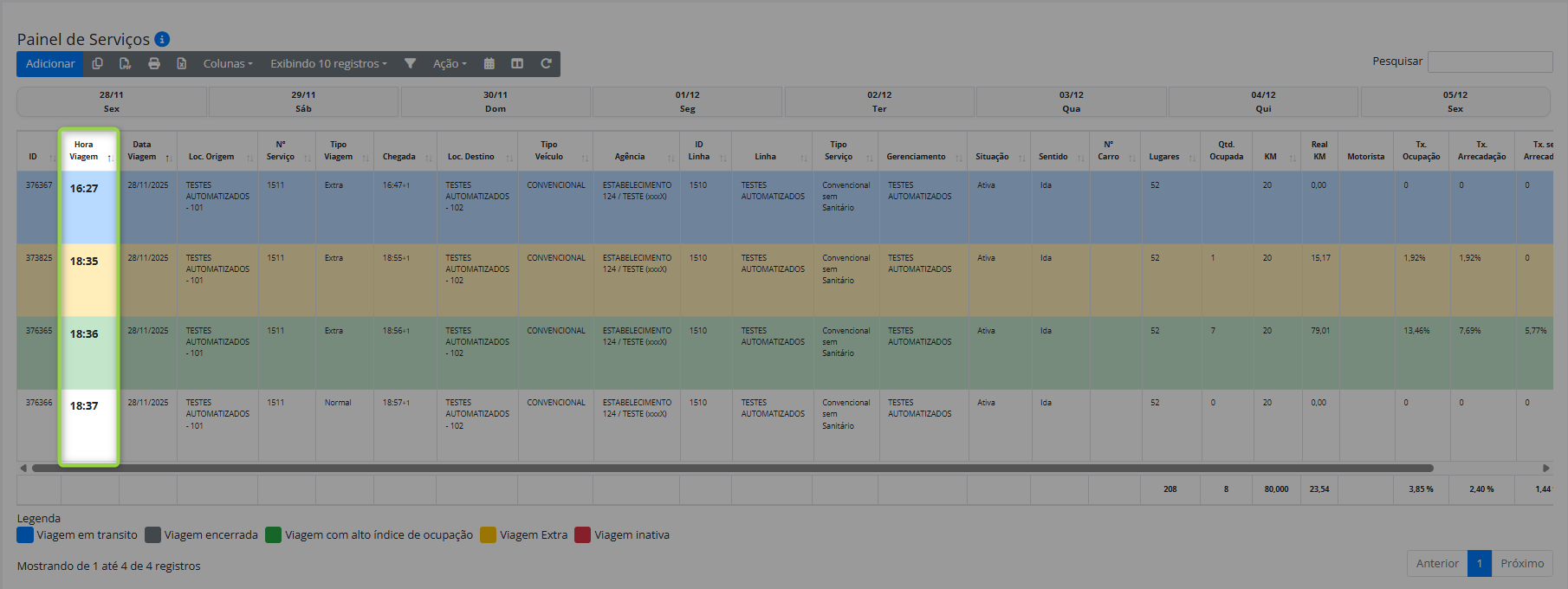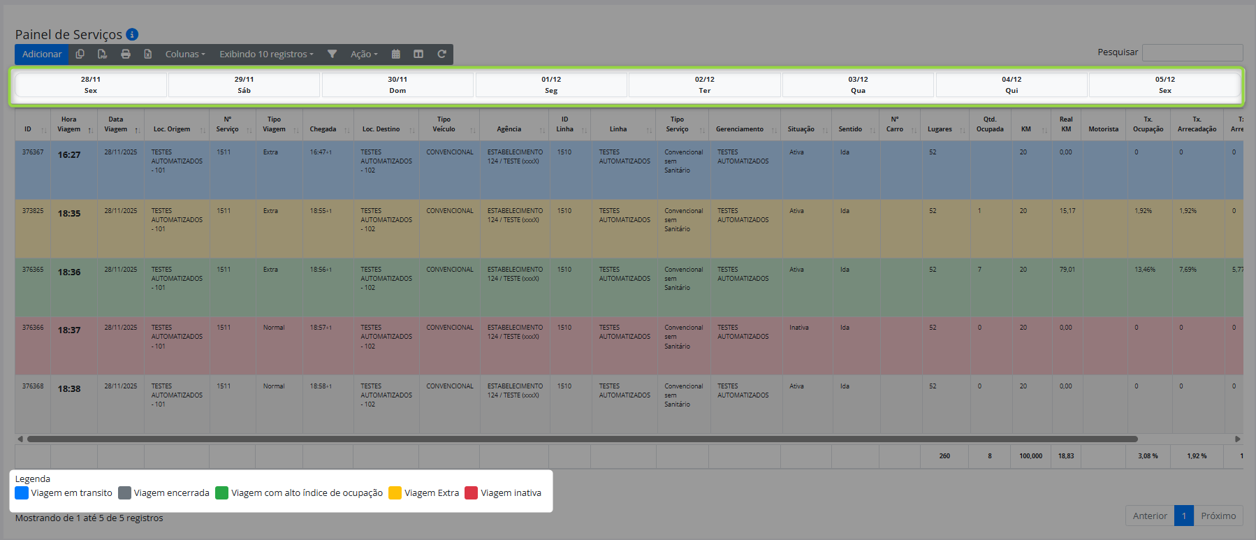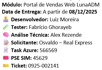 Ilustração dos novos parâmetros e seus reflexos no painel de serviço na opção de visualização Tabela. *Portal Web Luna ADM. Nomes, documentos e telefones lançados nesse teste, são meramente fictícios. “Atendendo assim as normas da LGPD”. |