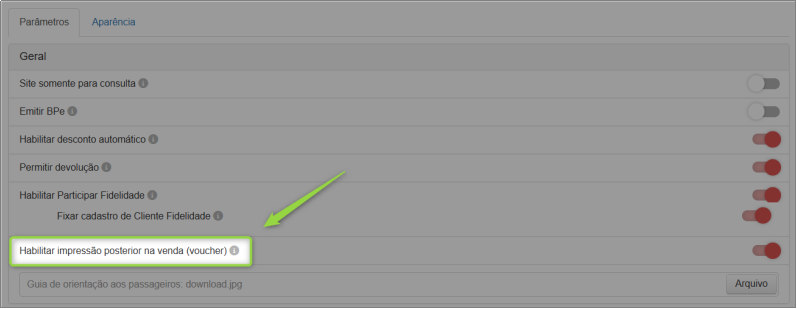 Foi implementada a funcionalidade de venda via Site White Label no formato de voucher, permitindo o resgate da passagem exclusivamente em loco. O que há de novo: Dessa forma, o resgate da passagem passa a ser realizado obrigatoriamente de forma presencial, mediante apresentação do voucher no ponto de atendimento.