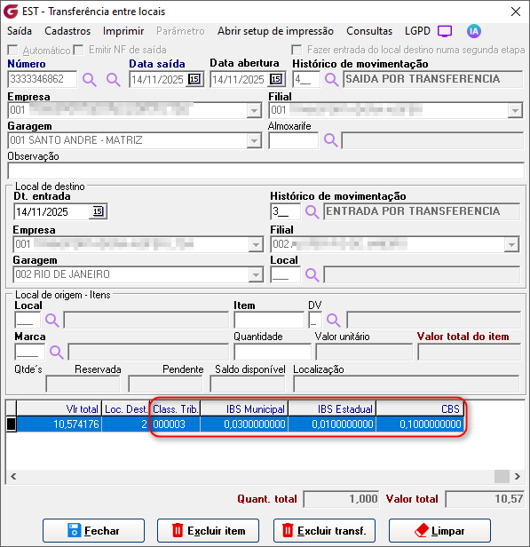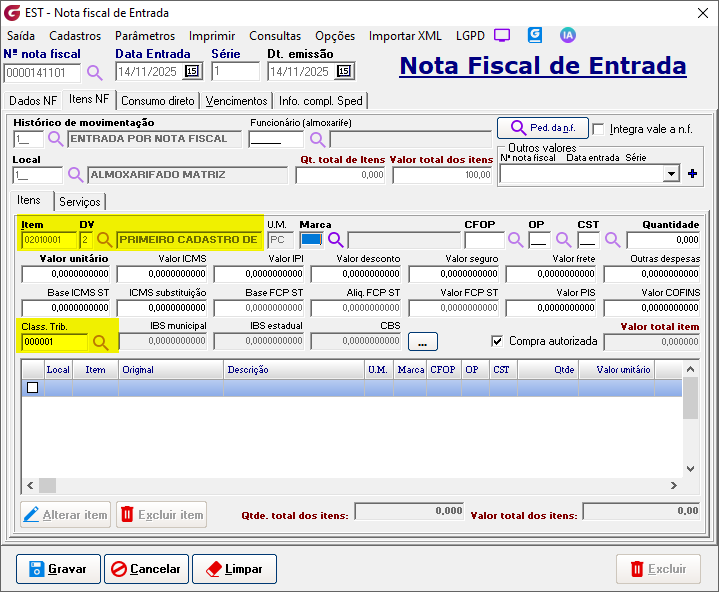 Na rotina de devolução de materiais, será gravada a classtrib que foi informada na entrada da nota fiscal, caso não tenha sido informada será gravada a classtrib do cadastro do material. De qualquer forma podem ser alteradas de acordo com a necessidade. |