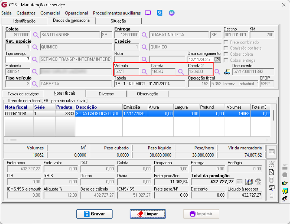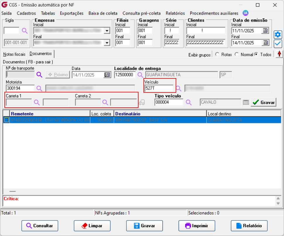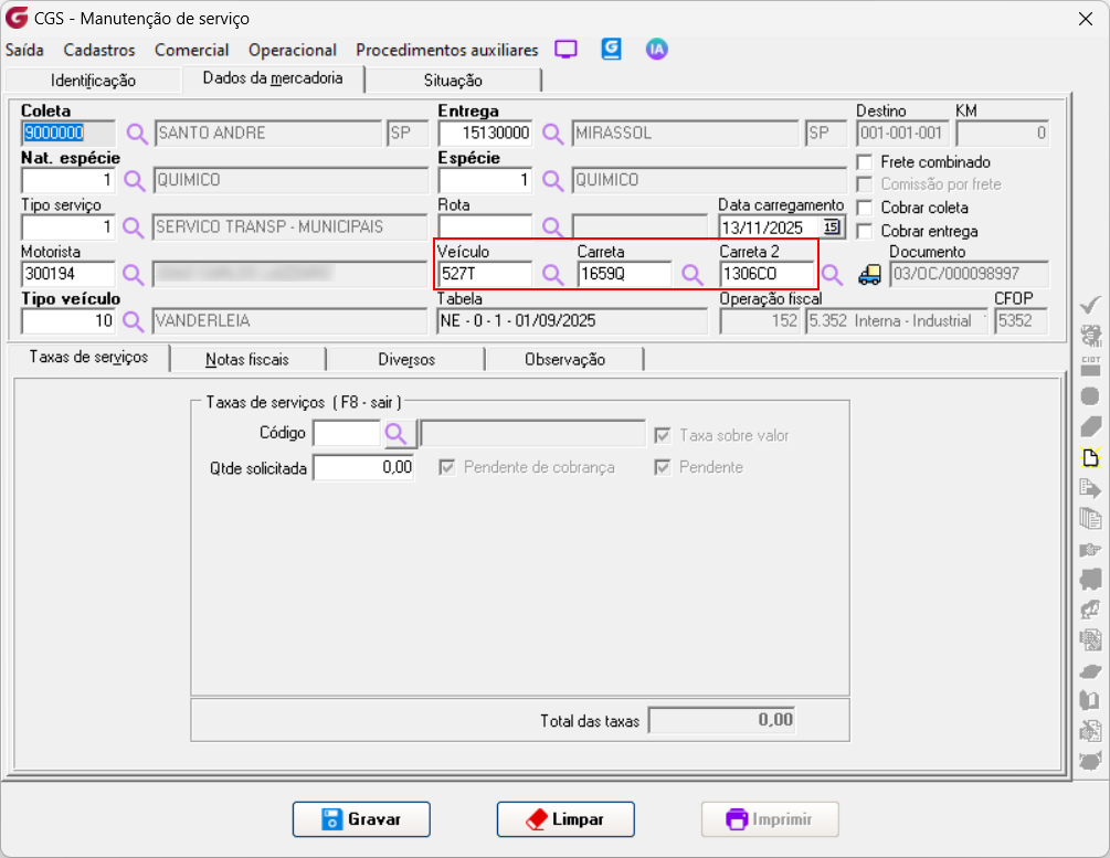 Lembrando que as informações de carreta 1 e 2 sempre serão atualizadas com base na OC/ACT.