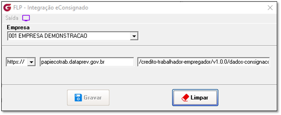 - Criamos o parâmetro com a URL de endereço do site do Emprega Brasil, não sendo necessário manutenção neste tela, visto que já foram preenchidos automaticamente as informações oficiais para conexão com o site.