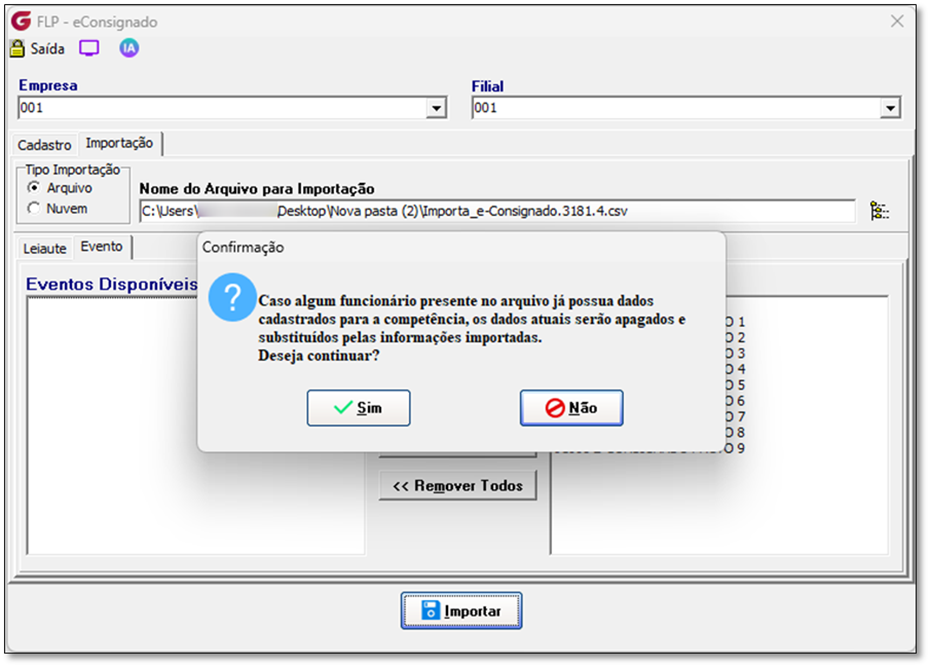 Foi removida a opção "Sobregravar existentes" na aba de Importação. Agora, o processo ocorre da seguinte forma: